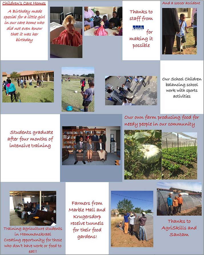 Amazing Graces channels Social Investment activities from South African and international corporate companies, tourism and other interest groups to needy areas in South Africa. Based in Centurion with a pilot project in Olievenhoutbosch, Amazing Graces has set up a soup kitchen operation for local school children, which is supported financially by iThemba and other generous corporate sponsors. Further soup kitchen operations will soon be initiated in townships around Pretoria, Midrand, Johannesburg, East- and West Rand.